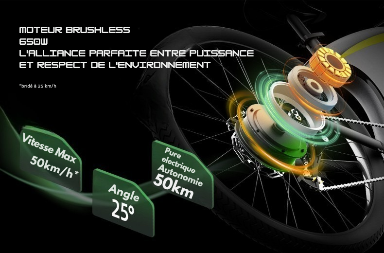 Avec ses pneus larges et résistants, le 650 VKT offre une adhérence optimale et une stabilité incomparable, que vous soyez en pleine ville, sur des chemins de campagne ou sur des terrains plus exigeants.